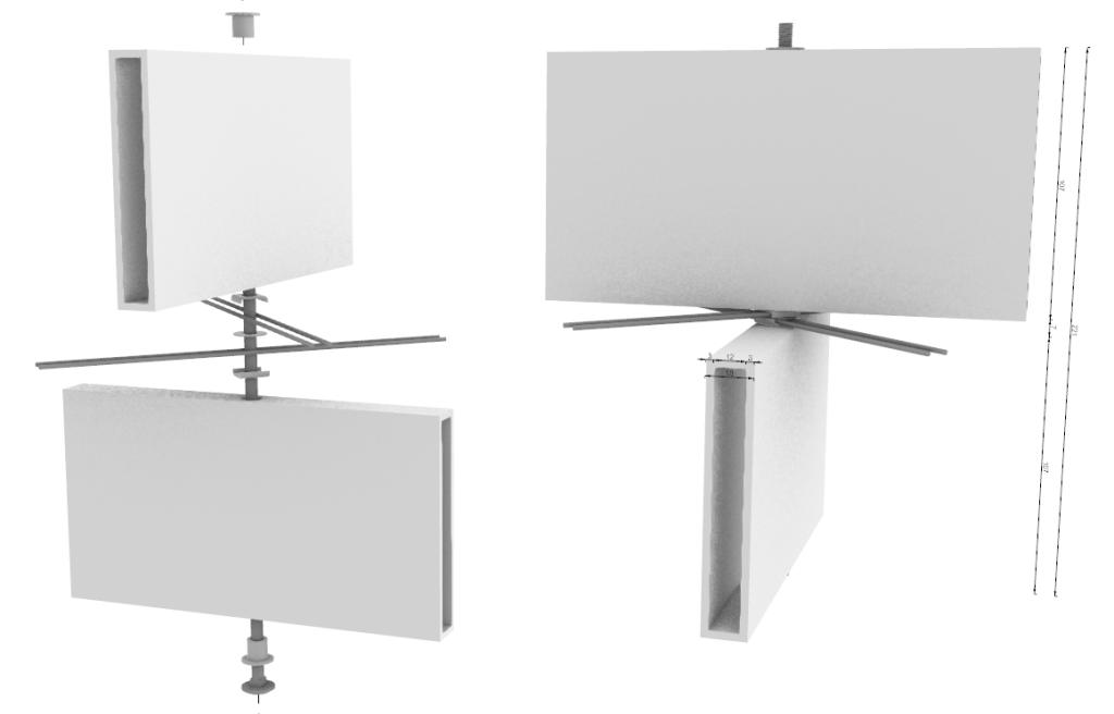 hollow GRP sections of approx. 100x20x3 mm. All joints are hinged in order to accommodate a compliant mechanism. The spring effect will automatically close the umbrella upon releasing the vertical cables. A series of tailored ring cables define the unfolded geometry and secure the cantilever.
