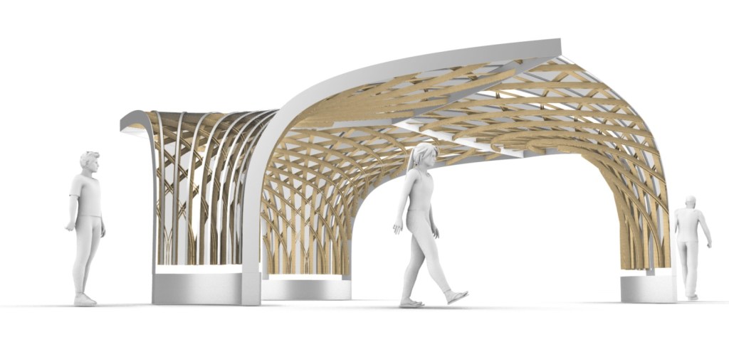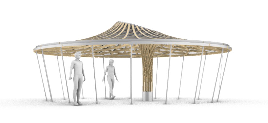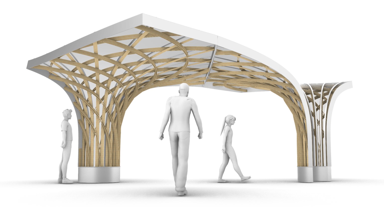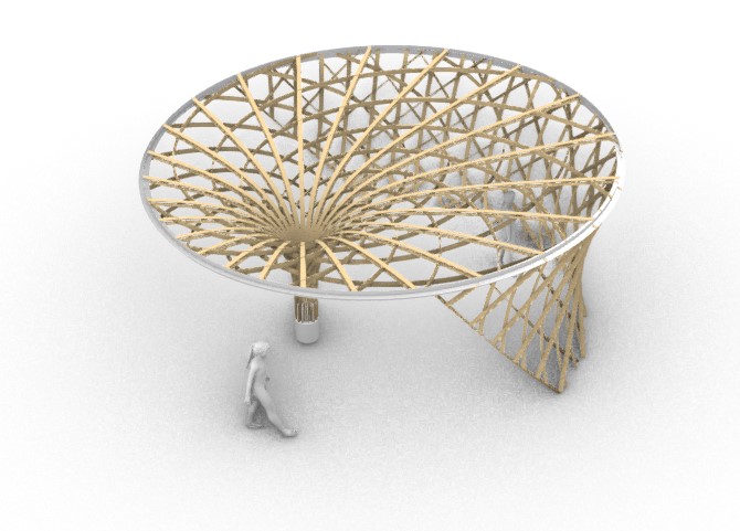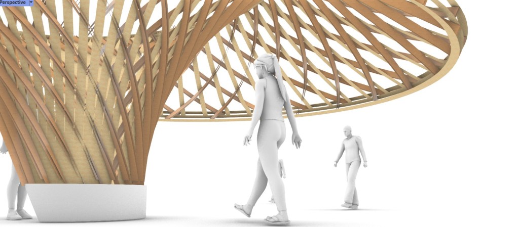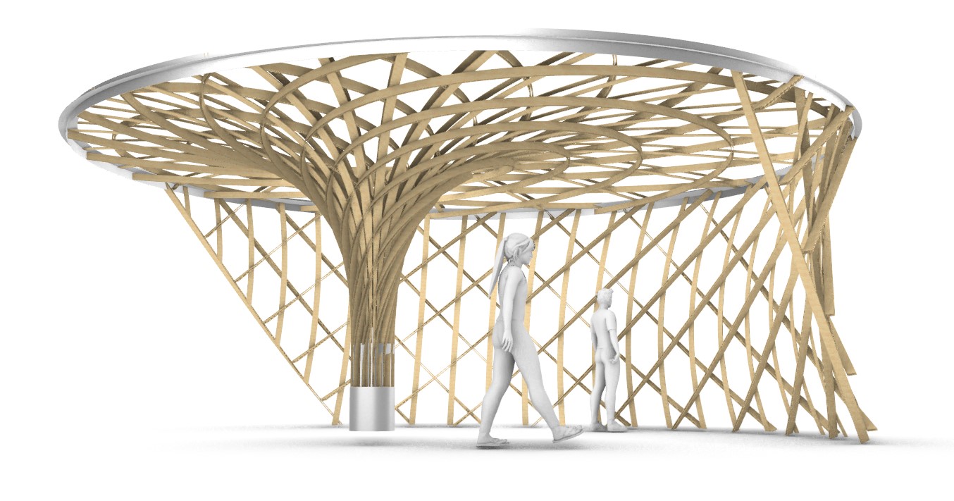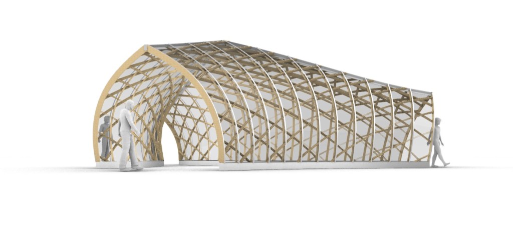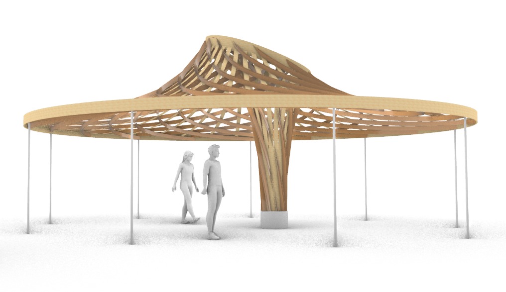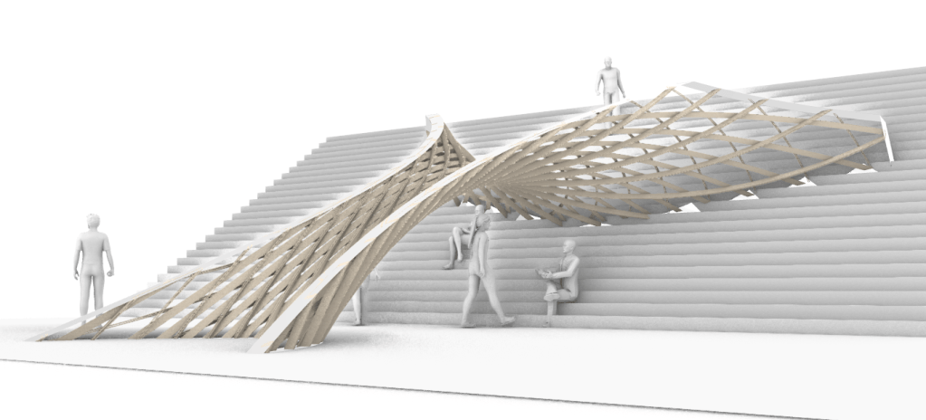 This research project combines new methods from applied geometry, computational architecture, and structural design. We design webs of asymptotic and geodesic curves to weave simple planks of wood in their tall and flat orientation into a lightweight timber structure. This offers high structural rigidity, developable panelization, simple flat prefabrication, and a kinetic erection process. A prototypical structure will be realized in fall 2022 at the Design Factory, TUM.