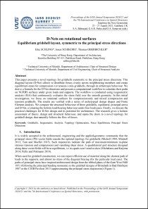 Title: D-Nets on Rotational Surfaces. Equilibrium gridshell layout, symmetric to the principal stress directionsType: Conference ProceedingsYear: 2021Authors: Eike Schling, Jonas Schikore, Thomas OberbichlerPublished in: International Conference on Spatial Structures, IASS 2020/21Office: The University of Hong Kong, Department of Architecture AbstractThis paper