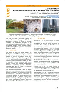 The IASS Executive Council has approved the creation of a new working group, WG 22, on Architectural Geometry. Its mission is to spread knowledge on architectural geometry in the structural engineering community and to enrich the architectural geometry domain with